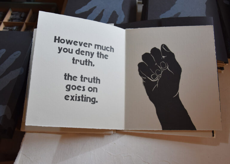 Les 28 exemplaires, a été imprimés sur papier Rives BFK gris sur une presse Vandercook dans l’atelier des Editions Verdigris en janvier 2026.