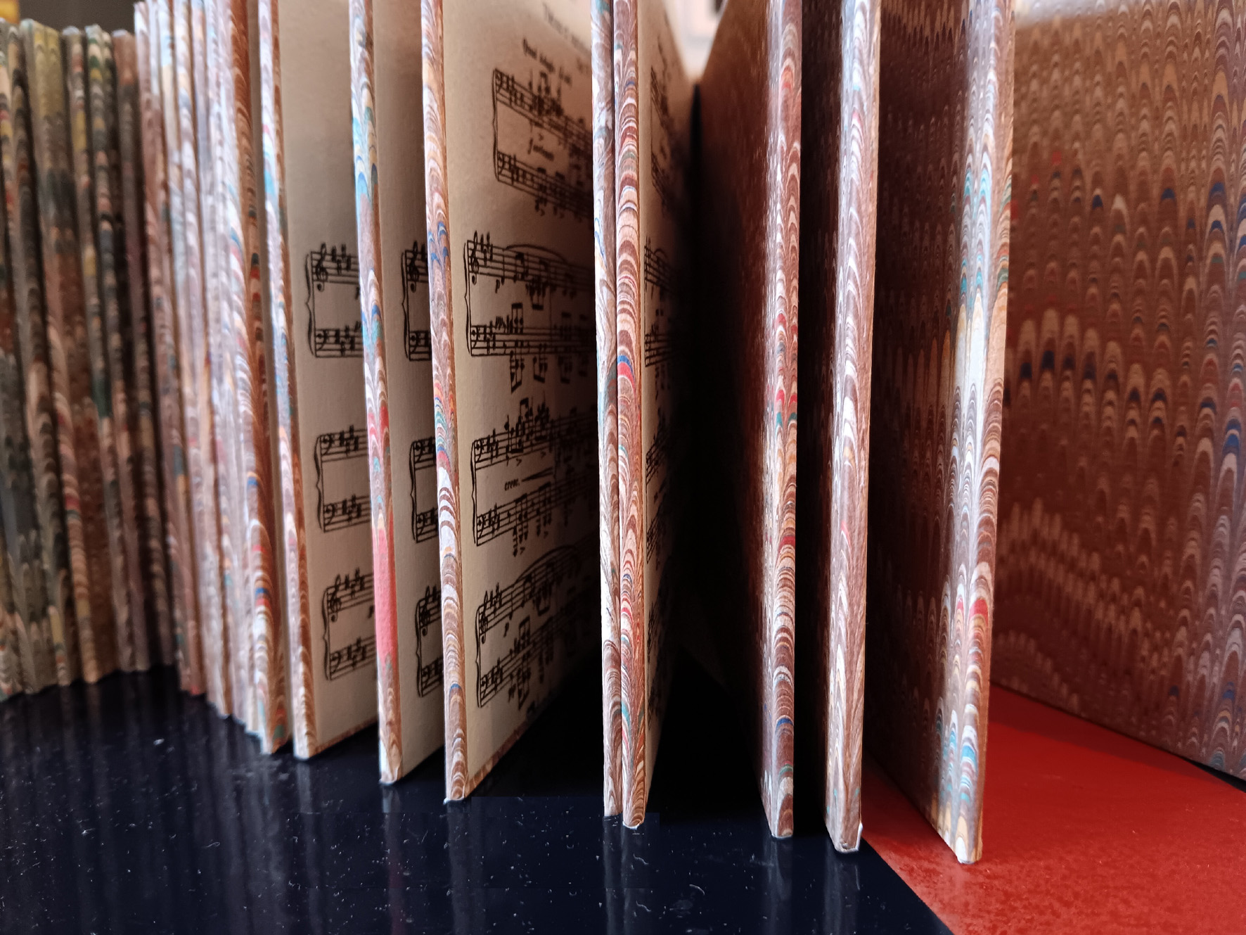 La typographie en caractères mobiles et la mise en livre sont de Mark Lintott. Les beaux papiers marbrés à la cuve sont la création de Marie-Anne Hermaide.